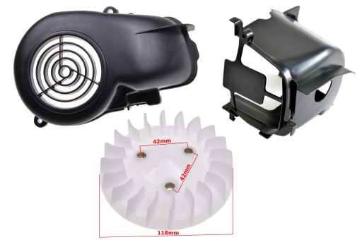 NOWY ZESTAW OSŁON WENTYLATORA, CYLINDRA, WENTYLATOR DO SKUTERA 2T