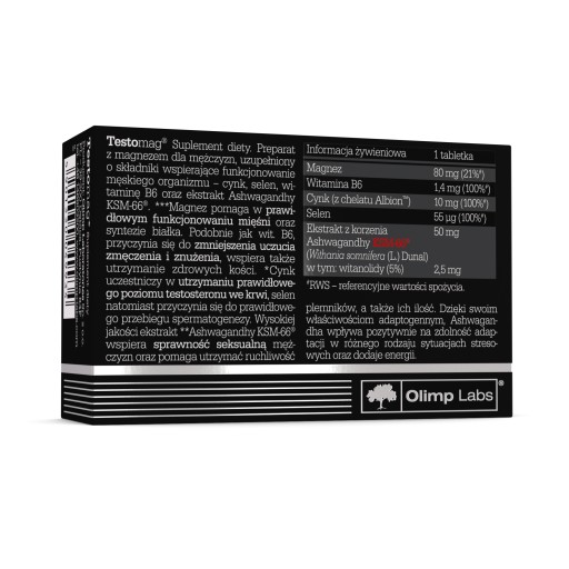 ✅ Testomag® to preparat magnezowy dla mężczyzn uzupełniony o składniki wspierające funkcjonowanie męskiego organizmu – cynk, selen, witaminę B6 oraz ekstrakt Ashwagandhy KSM-66.