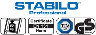 Oferowana teleskopowa drabina przegubowa serii STABILO jest sprawdzona i testowana pod względem bezpieczeństwa oraz spełnia obowiazujące normy BHP. Posiada również certyfiat i deklarację zgodności oraz potrzebną do prawidłowego zastosowania, instrukcję montażu i użytkowania.