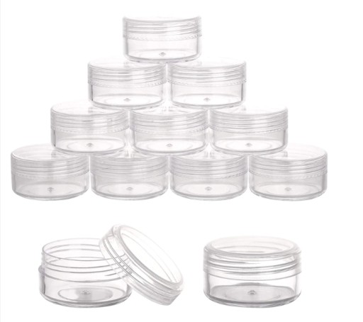 Przeźroczyste pojemniczki na ozdoby do zdobienia paznokci, lub na płyny.