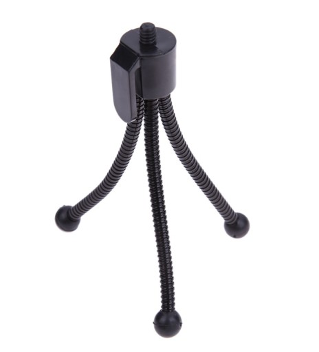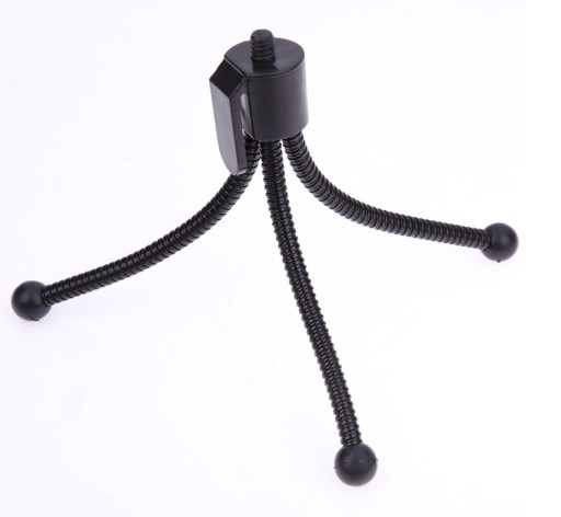 Statyw przeznaczony dla kamer, małych aparatów, telefonów (po zastosowaniu uchwytu - dostępny na naszych aukcjach). Statyw jest wyposażony w antypoślizgowe nóżki które pomagają w montażu na śliskich powierzchniach.