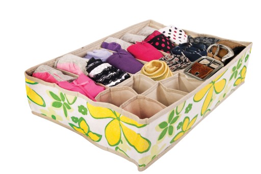 Pojemnik z przegródkami przeznaczony jest na bieliznę, skarpetki, krawaty, paski, biustonosze.