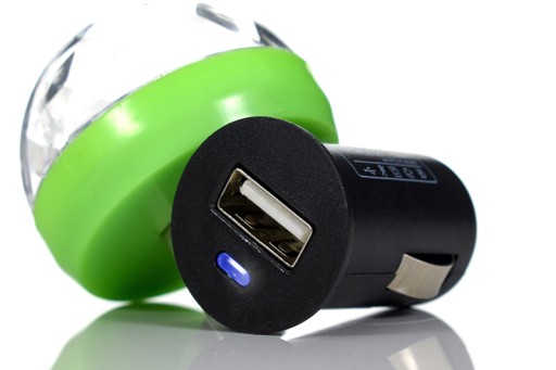 Miniaturowa, przenośna kula dyskotekowa LED ze standardowym wtykiem USB w zestawie z ładowarką samochodową!