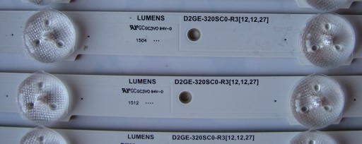 Podświetlanie matrycy / listwy LED Lumens D2GE-320SC0-R3 - oryginalnie do TV Samsung 32F5000/F5300/F5500 z matrycami FULL HD (firmy Auo i Samsung - do paneli Sharpa z t-con RUNTK5351TP nie pasują - tam jest inny symbol listwy). Listwy NOWE, w 100% sprawne i oryginalne - zdemontowane z NOWYCH paneli - są w idealnym stanie, nie wygrzane itp (100% oryginał, nie żaden chiński zamiennik). Pasują też do innych modeli ....np UE 32F6270, UE 32F5300, UE 32F5570, UE32F5000, UE32F4000, UE32F4500, UE32F5370, UE32F6100, 32F5070 itp kwestia rodzaju matrycy..... (nie pasują pod panel sharpa) Podana cena za cały komplet / 5 szt (5x 9led) Zapraszam do zakupu!!!