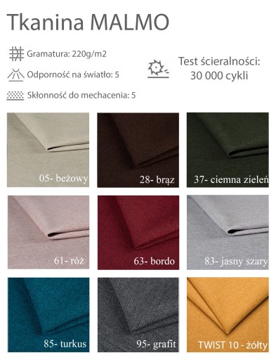 Bardzo dobrej jakości, wytrzymałe tkaniny odporne na uszkodzenia oraz ścieranie.