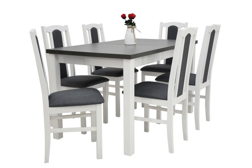 Kolorystyka: stół blat grafit / podstawa, nogi białe, krzesła białe/ tap 8 (MALMO NEW 95)
