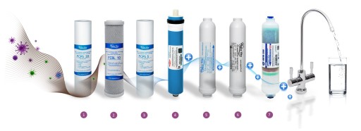 Woda przepływając przez ten system poddana jest 7- etapom filtracji:
