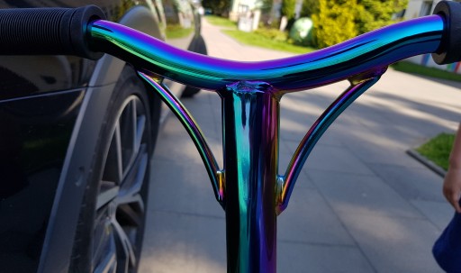 Podczas jazdy wyczynowej podstawą jest pewny chwyt kierownicy. Jest to ważne zarówno w kwestii bezpieczeństwa ale również w komforcie jazdy. Nasza hulajnoga jest wyposażona w profesjonalne gumowe uchwyty. Zapewniają pewny chwyt, są bardziej wytrzymałe i mniej odporne na zużycia w porównaniu z uchwytami rowkowanymi.
