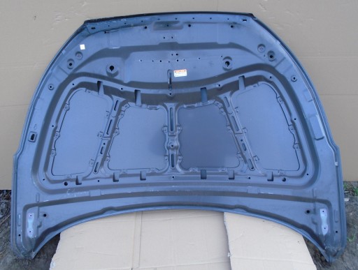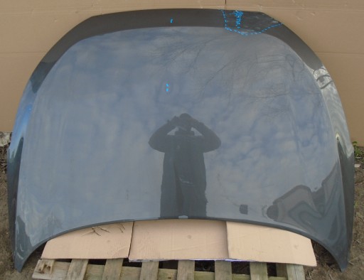 3 minimalne mikrowgniotki transportowe i fachowo podklepane uszkodzenie w górnej części maski, w miejscu oznaczonym markerem. Nie widać rozwiniętej korozji.
