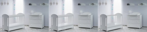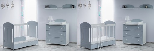 - Łóżeczko wykonane jest z drewna sosnowego oraz płyty meblowej