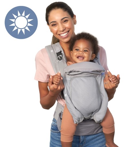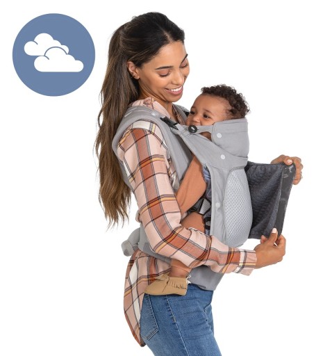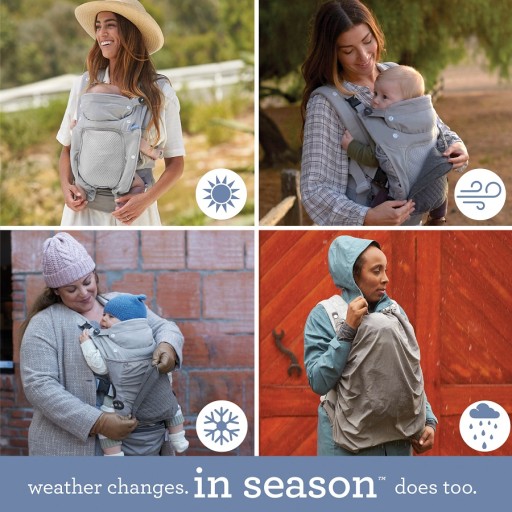 Wielofunkcyjne nosidełko, które dzięki specjalnym materiałom będzie odpowiednie na każdą porę roku. W sumie zawiera 2 dodatkowe osłony, wodoodporny pokrowiec i kapturek. Na słoneczne dni - muślinowy kapturek, który będzie też idealny podczas snu. Na ciepłe dni - panel z „oddychającego” przepuszczającego powietrze materiału. Na chłodniejsze dni – dodatkowa bawełniana osłona na panel nosidełka. Na zimne dni – druga bawełniana osłona dla utrzymania ciepła. Na deszczowe i śnieżne dni – wodoodporny pokrowiec. Z przodu pasa biodrowego znajduje się saszetka zapinana na zamek, w której zmieszczą się drobne przedmioty.