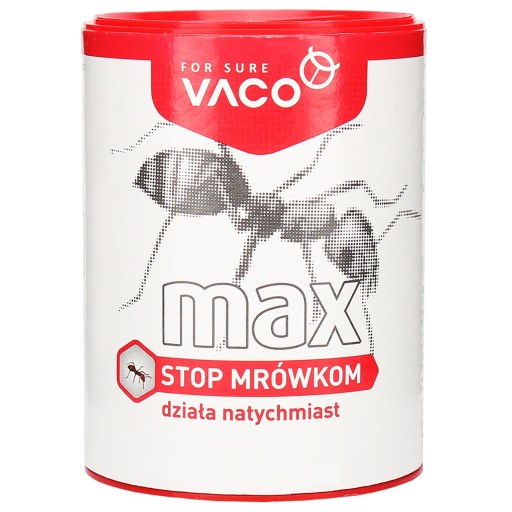 Preparat owadobójczy VACO MAX STOP MRÓWKOM zwalczający mrówki, w formie gotowej do użycia przynęty do posypywania.