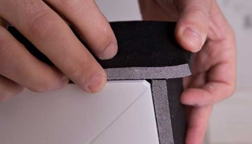 - Odciąć początki i końce. Przy ucinaniu taśmy dodać co najmniej 2 cm/m. Montaż w spoinach pionowych zacząć od dołu. Końcówki taśmy łączyć na styk. Taśmę należy przykleić do odpowiedniego podłoża. Ścianki boczne szczeliny powinny być równolegle (maks. odchyłka 3°)