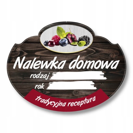 - Doskonale sprawdzi się jako oznaczenie Twoich wyrobów. Na etykiecie znajduje się miejsce na NAZWĘ Twojej nalewki i ROK w którym została wyprodukowana.