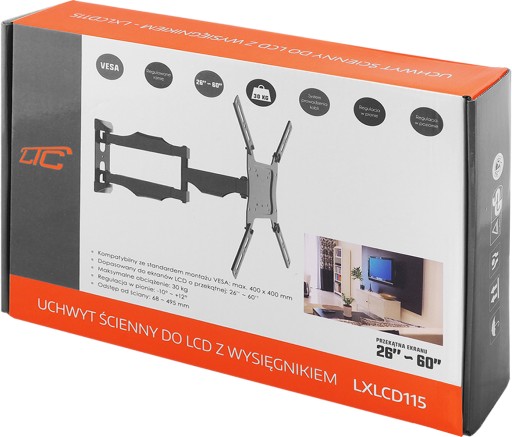 MOCNY UCHWYT ŚCIENNY POLSKIEJ MARKI "LTC" Z REGULACJĄ KĄTA NACHYLENIA DO 15°