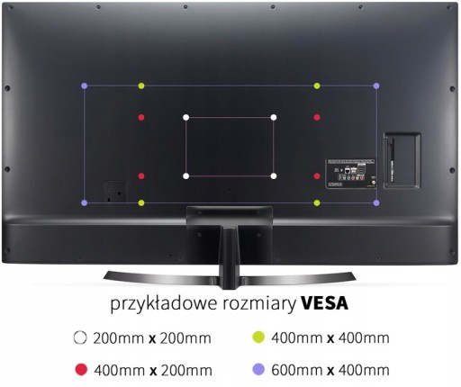 - VESA 400x200 (w poziomie 400mm x w pionie 200 mm)
