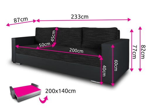 - Kanapa rozkładana,
