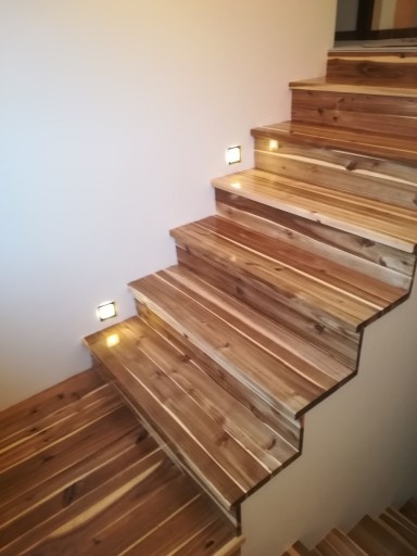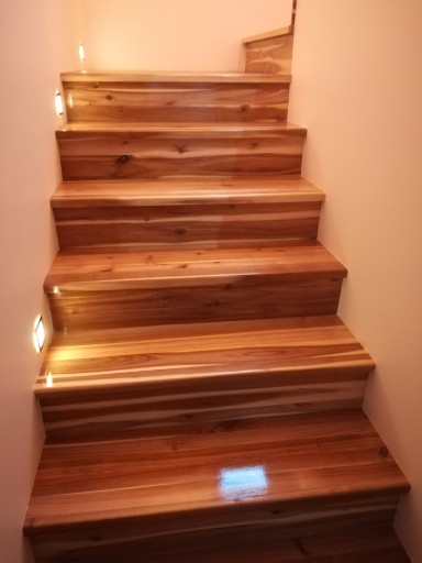 Stopień został wykonany z lameli ciągłych, czyli nie klejonych na długości. Schody wykonane z drewna akacji są stabilne i trwałe, nie wypaczają się, są odporne na wilgoć, łatwe w samodzielnej pielęgnacji.