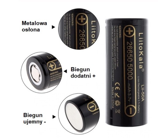 Zestaw LiitoKala : ładowarka oraz dwa akumulatorki typu 26650 3.7V