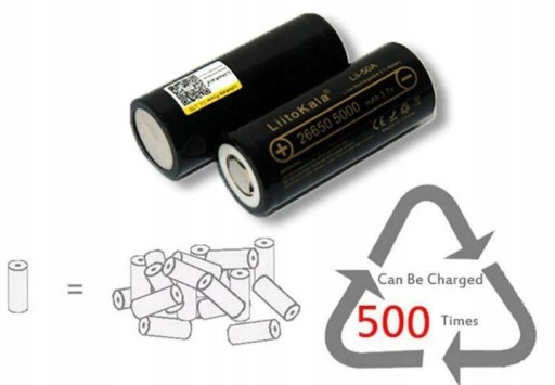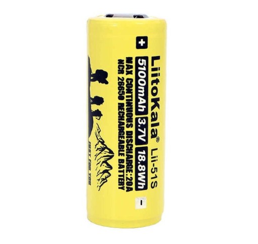 W zestawie znajdują się również dwa akumulatorki LiitoKala typu 26650 o pojemności 5100mAh każdy.