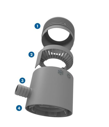 Zbieracze uniwersalne, pasują do rur o średnicach w zakresie 80 - 105 mm oraz rur z dowolnego materiału, tj. zarówno plastikowych jak i metalowych. Zbieracze można montować na już istniejącej instalacji bez konieczności zdejmowania rury. Zbieracz posiada wbudowany filtr. Zbieracz posiada nastawę lato / zima przez obrócenie kopułki. Nastawa zima powoduje odcięcie dopływu wody do zbiornika.