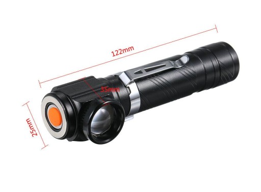 Latarka jest wodoodporna, jednak nie nadaje się do pływania, czy nurkowania. Swobodnie możemy jej używać podczas deszczu. Kąt strumienia światła można łatwo regulować w zakresie do 180° poprzez obrócenie korpusu w polimerowej obejmie opaski. W odróżnieniu od tradycyjnych czołówek, nasza latarka, po odpięciu z montażu może być wykorzystywana jako poręczna latarka kątowa.