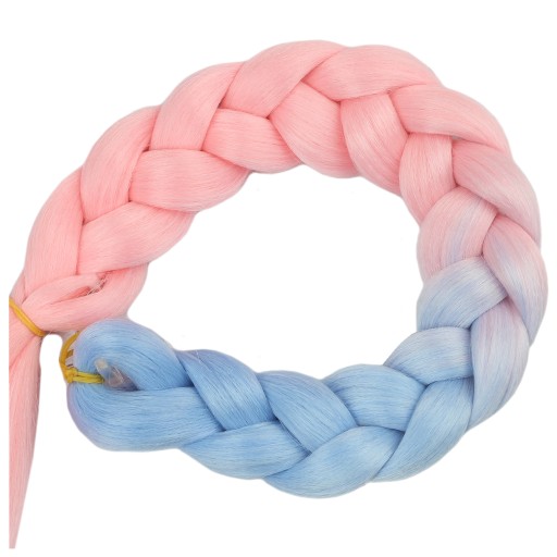 Włosy syntetyczne w przepięknym wariancie kolorystycznym -niebiesko-różowym. Wykonane z gładkiego i przyjemnego w dotyku henlonu.