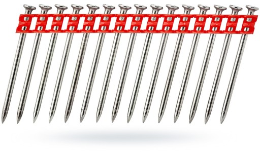 - Dla większej wygody i organizacji gwoździe w wersji HX Extra Hard mocowane są na taśmie plastikowej w kolorze czerwonym.