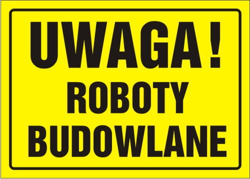 Tabliczka informacyjna UWAGA ROBOTY BUDOWLANE