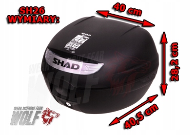 SH26 to solidny, markowy kufer centralny należący do nowej generacji kufrów motocyklowych hiszpańskiej firmy Shad. Jest wykonany z lekkich, lecz wytrzymałych materiałów, a dzięki wodoszczelnej budowie, podwójnemu systemowi zamykania i 26 litrom pojemności umożliwia bezpieczne przewożenie lub przechowywanie kasku integralnego, rękawiczek i jeszcze kilku drobiazgów.