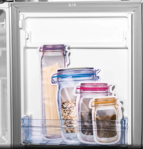 Pojemnik, torba do przechowywania żywności z zamkiem błyskawicznym ZeroWaste wielokrotnego użytku w kształcie słoika 3D .Pojemnik szczelny, odporny na zapachy.
