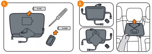 - bezpieczny montaż wokół zagłówka pojazdu za pomocą dwóch pasków montażowych