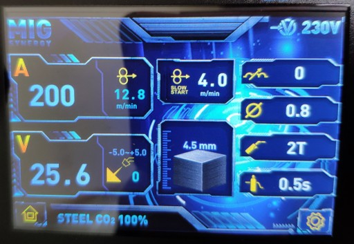Nowoczesny wyświetlacz LCD pozwala na łatwe i szybkie ustawienie napięcia prądu spawania oraz zarządzanie funkcjami urządzenia. W trakcie korekty parametrów wyświetlacz podpowiada kształt spoiny oraz graficznie wskazuje rekomendowaną grubość materiału dla wybranego prądu. Profesjonalny dwurolkowy podajnik, zapewnia płynne i równomierne podawanie drutu spawalniczego. Stabilne parametry wyjściowe gwarantują uzyskanie wysokiej jakości spoiny. Przykładowe zastosowania: przemysł lekki, prace remontowe w terenie, prace warsztatowe, motoryzacja, spawanie tłumików.