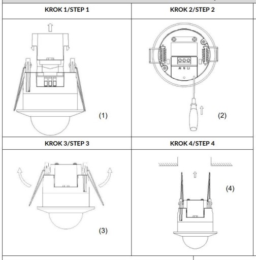Jeśli natężenie światła otoczenia jest mniejsze niż 3 LUX (ciemność), czujnik zacznie pracować. W przypadku braku sygnału, czujnik powinien przestać pracować w ciągu 10 s ± 3 s.