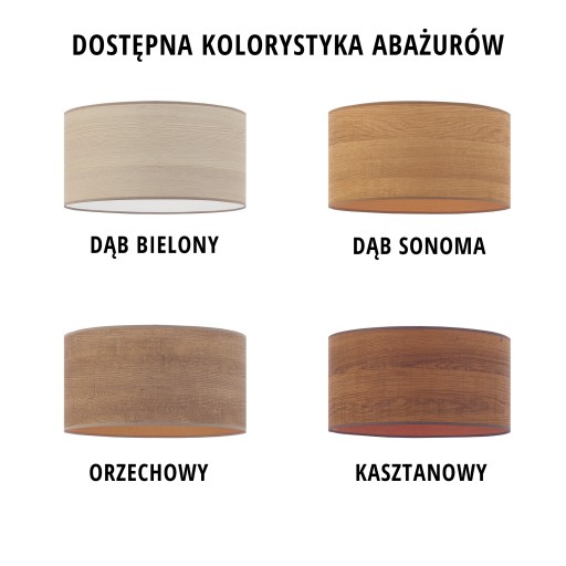 - ABAŻUR: dąb bielony, dąb sonoma, orzechowy, kasztanowy (do wyboru)
