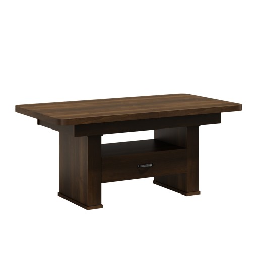 Oferujemy Państwu wysokiej jakości ławo - stół zaprojektowany z myślą o kompleksowym wykorzystaniu powierzchni małych pokoi. Ława posiada funkcją rozkładania na prowadnicy linkowej ciągnąc za jedną połówkę blatu druga rozciąga się samoczynnie oraz podnoszenia.na podnośnik czteropunktowy Sprawdzi się zarówno jako stolik kawowy jak i stół dla całej rodziny w czasie niedzielnego obiadu.Ława jest wykonana z płyty obustronnie laminowanej. Materiał ten charakteryzuje się zwiększoną odpornością na uszkodzenia mechaniczne, zarysowania, oddziaływanie wysokich temperatur. Nie zaszkodzi mu gorąca szklanka postawiona bezpośrednio na blacie.Krawędzie blatu wykończone są obrzeżem PCV zabezpieczającym elementy ławy przed uszkodzeniami mechanicznymi.Wkładki nie mieszczą się pod blatem chowamy osobno.