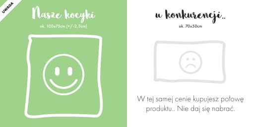 Z uwagi na braki magazynowe, zdarza się że frędzelki (chwosty) zostają zmienione na inny kolor tj. szary lub beż, tak by pasowały do kocyka.