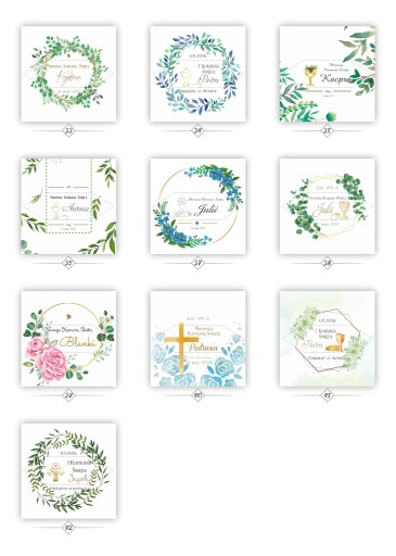 Do wykonania projektu podaje obowiązkowo odmienione imię dziecka poprawnie odmienione czyli np Szymona, Czyli etykieta będzie wygląda Pierwsza Komunia Święta Szymona, (w zależności od wzoru bo może być napisane I Komunia Święta), jeżeli napiszesz nam Szymon to etykieta będzie wgląda Pierwsza Komunia Święta Szymon (lub w zależności od etykiety I Komunia Święta Szymon).