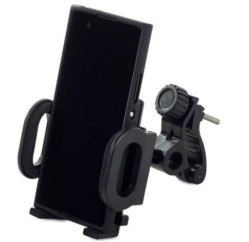 Uniwersalny uchwyt motocyklowy, idealnie nadaje się do montażu na kierownicy w rowerach, motocyklach czy skuterach. Uchwyt trzyma bardzo mocno oraz posiada specjalny system do mocowania, który uniemożliwia odpadnięcie.