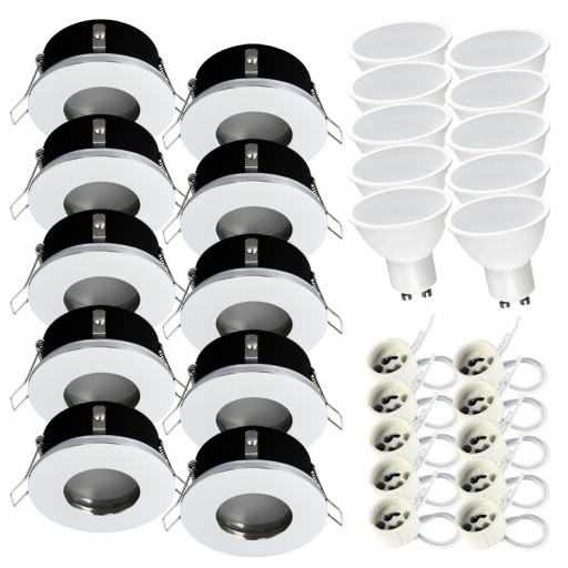 10 встраиваемых галогенных ламп IP44 + светодиод GU10 7 Вт