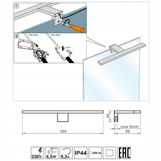 Lampa posiada klasę ochronności IP44 co sprawia, że może być stosowana w pomieszczeniach o podwyższonej wilgotność - np. łazienka.o
