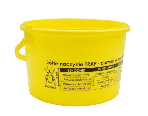 - Żółte naczynie pomaga diagnozować szkodliwość owadów takich jak: chowacz, słodyszek rzepakowy oraz pryszczarek kapustnik.