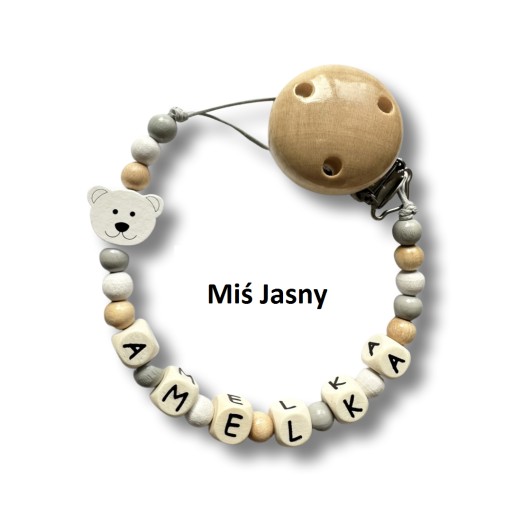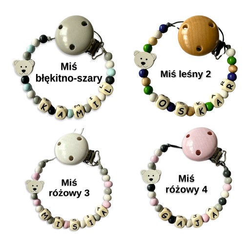 Zawieszki do smoczka drewniane, z imieniem lub bez, zawieszki wykonane z naturalnego drewna,koraliki lakierowane z atestem,sznurek poliestrowy.