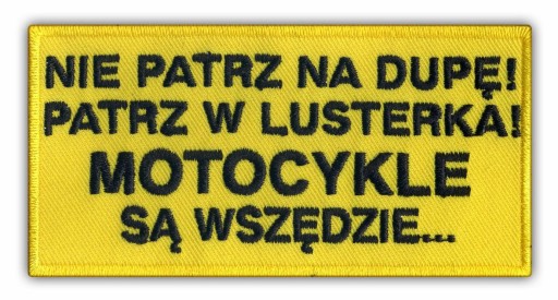 Motocykle są wszędzie - Nie patrz na dupę! naszywka wykonana techniką haft komputerowy.