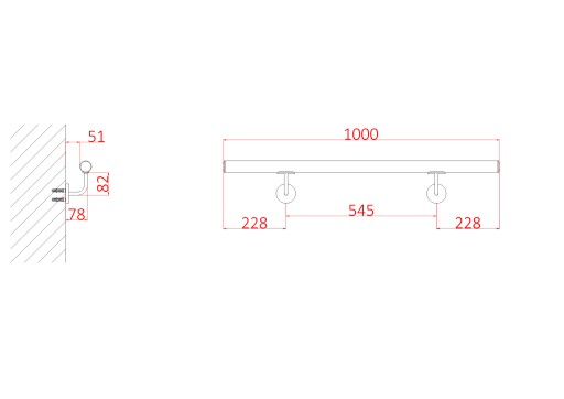 Poręcz ścienna schodowa z zaślepką płaską lub wypukłą do samodzielnego montażu