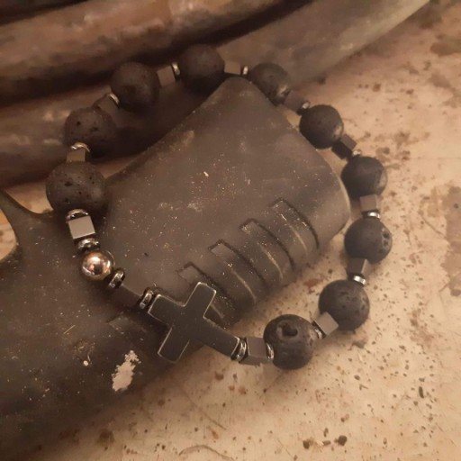 Krzyżyk i przekładki są wykonane z hematytu.
