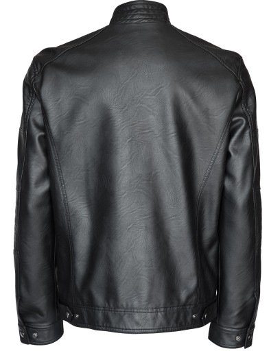 OWOŚĆ -Męska Czarna Kurtka skórzana eko-z przeszyciami