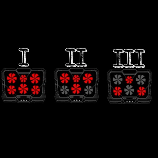 - Tryb I - Maksymalna moc podkładki- korzystasz z 6 wiatraków