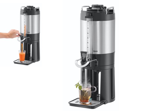 Dwuściankowy dyspenser marki Bartscher umożliwi wygodne serwowanie zarówno gorących, jak i zimnych napojów w rozmaitych lokalach gastronomicznych, hotelach i na stołówkach. Sprawdzi się także jako wyposażenie firm cateringowych oferujących usługi w zakresie organizacji szkoleń czy spotkań biznesowych. Termos posiada certyfikat CE wymagany przez Sanepid.