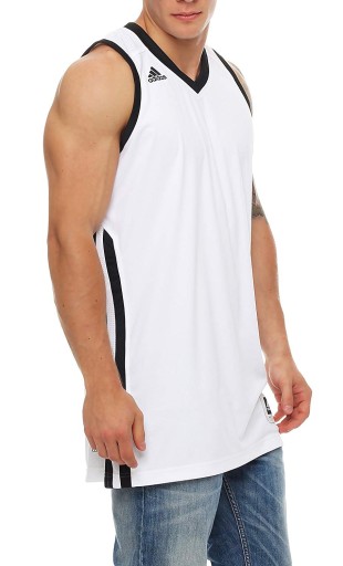 Koszulka stworzona z myślą o koszykarzach, doskonale nadaje się do każdej aktywności fizycznej. Wyróżnia się dwustronnym designem z siateczką i kontrastowymi trzema paskami po jednej stronie oraz mocną dzianiną o podwójnym splocie po drugiej. Model skonstruowany tak, aby zapewnić przepływ powietrza w każdym momencie, wykonany jest z materiału odprowadzającego wilgoć dla zapewnienia wyjątkowej wentylacji.